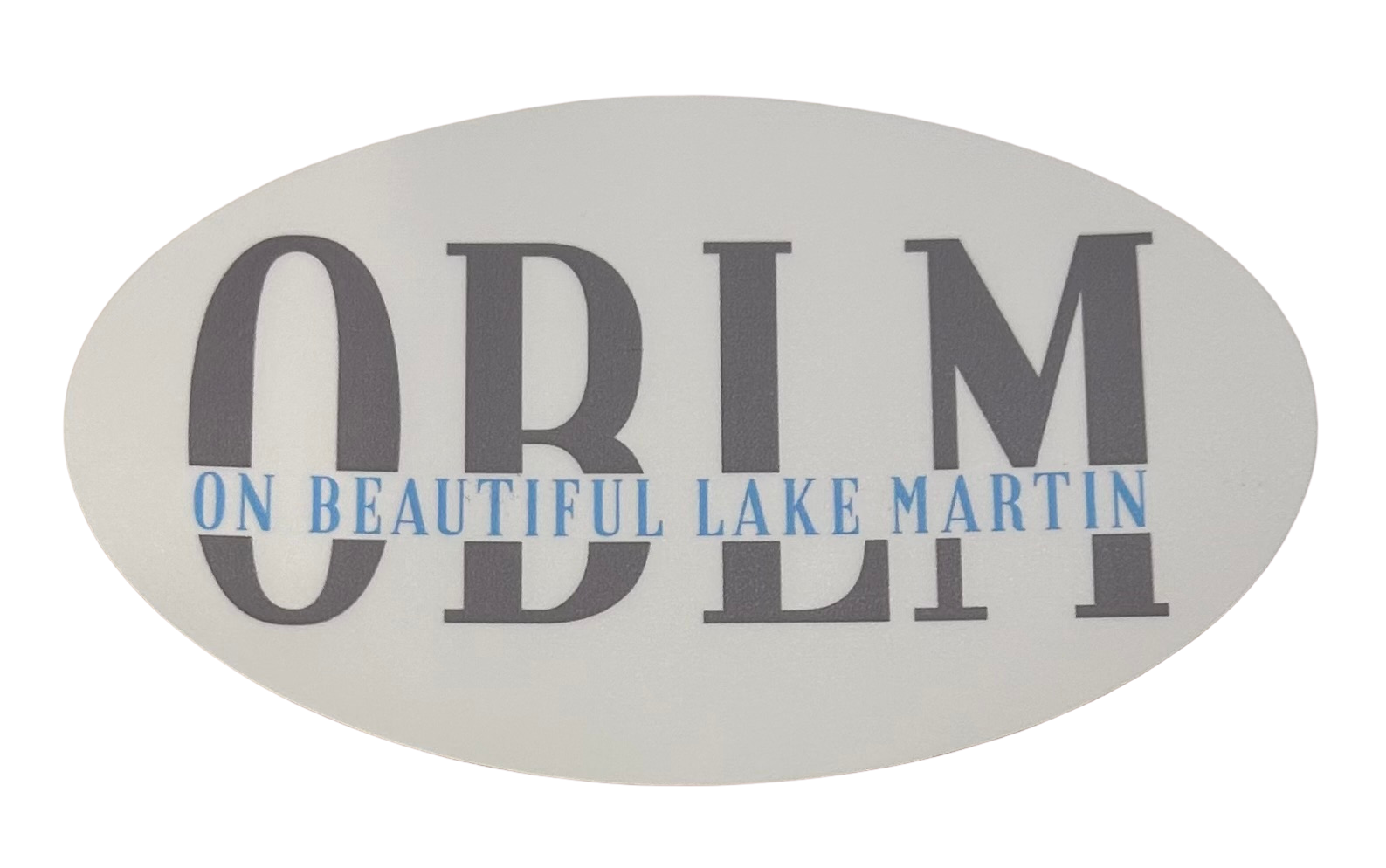 Introducing the On Beautiful Lake Martin (OBLM) decal, measuring 5x3 inches. Ideal for coolers, car windows, and your favorite cup or tumbler. Crafted from durable, high-quality vinyl for easy application and lasting results. Amplify your love for the lake with this OBLM decal.